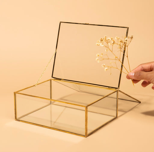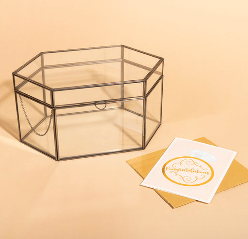 In stockHanna Roberts Glass Gold Metal Chain Jewelry Organizer Box with Velvet Bottom Card box for Weddings, Events, Baby Showers, and Birthdays Wher...