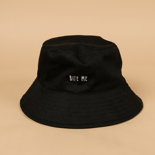 In stockFeeling Vampy, or just not in the best mood? Let everyone know with Hanna Roberts “Bite Me” Bucket Hat this fall. Printed with a pretty thang pout ...