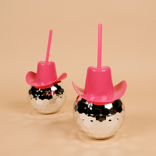 Low stockJump right into to the fun of Summer with this Hanna Roberts Set of 2 Cowgirl Hat Disco Plastic TumblersWhether your poolside, beach side or anywh...