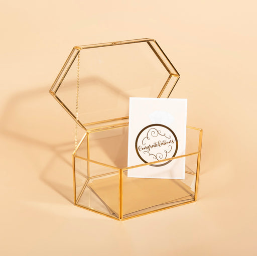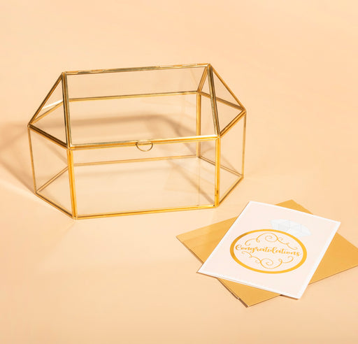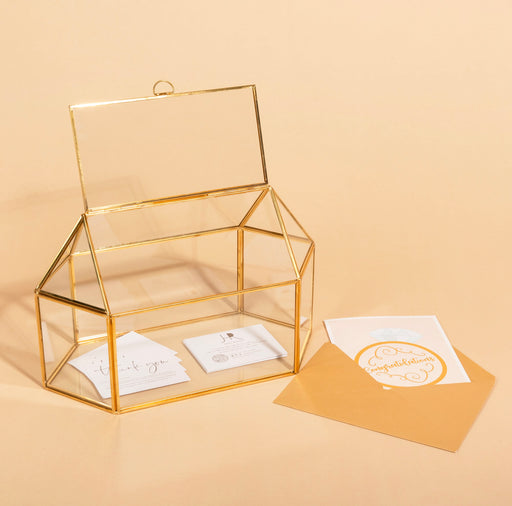 In stockHanna Roberts Card and Gift Holder Golden Brass Glass Cards Box for Weddings, Birthdays, Parties, and Bridal ShowersThis is beautiful and chic gol...
