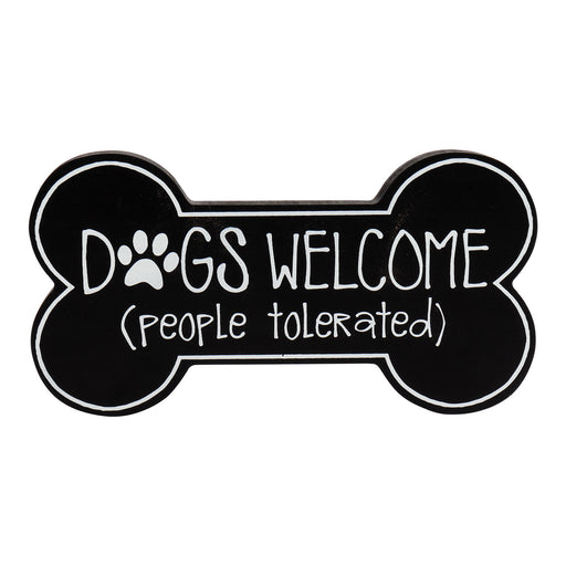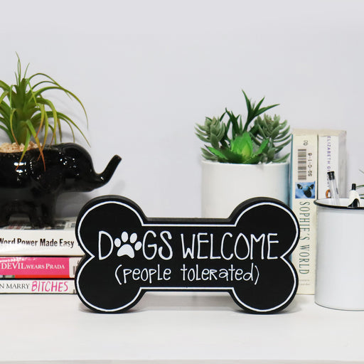 In stockProduct - Hanna Roberts Decorative Dog Bone Sign, Dogs Welcome (People Tolerated) for Wall or Table Decoration in Entry Way, Mudroom, Living Room, ...