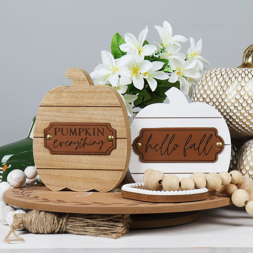 Fall Season Thanksgiving Holiday Pumpkin Shaped Decorative Sign Set, Pumpkin Everything & Hello Fall