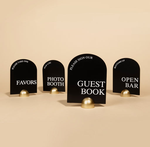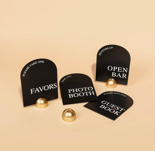 Set of 4 Wedding Reception, Ceremony, Party, Table Decoration Wood Signs with Holder - Black & Gold