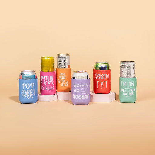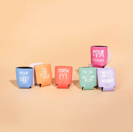 In stockSip in style with Hanna Roberts set of 6 colorful and individually designed Koozies. 6 colors; Purple, Green, Blue, Pink, Red and Orange with bla...