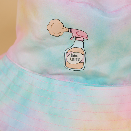 Tie-Dye Bucket Hat with "Idiot-Repellent" Spray Bottle Design