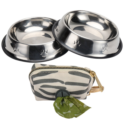 Stainless Steel Pet Bowls Set of 2 and Dog Poop Bag Holder Gift Set