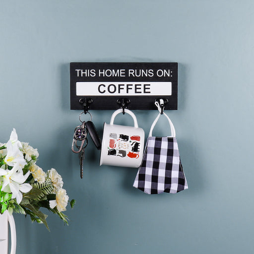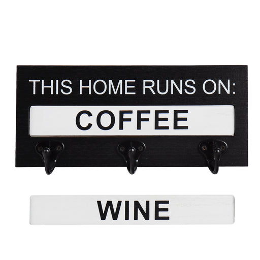 Triple Hook Key Holder with Rotating "This Home Runs on Coffee or Wine" Sign